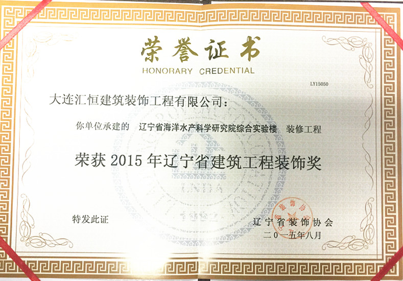 我公司施工遼寧水產學院項目榮國2015年度遼寧省建筑工程裝飾獎