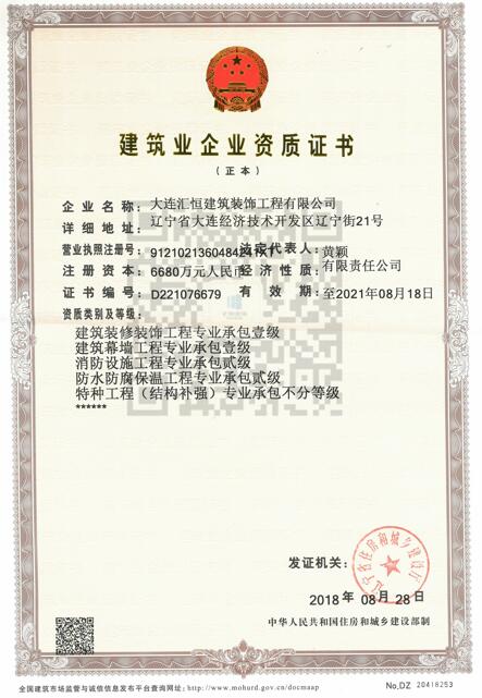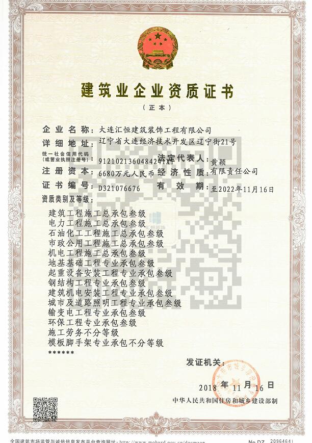 祝賀公司資質(zhì)升級(jí)成功,二十項(xiàng)資質(zhì)領(lǐng)跑大連建筑裝飾行業(yè)