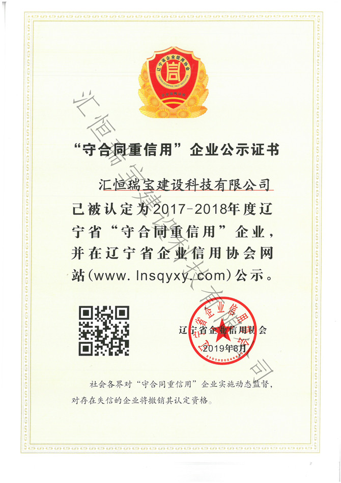 2017-2018度遼寧省“守合同重信用”企業(yè)公示證書(shū)