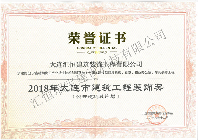 2018年大連市建筑工程裝飾獎(jiǎng)