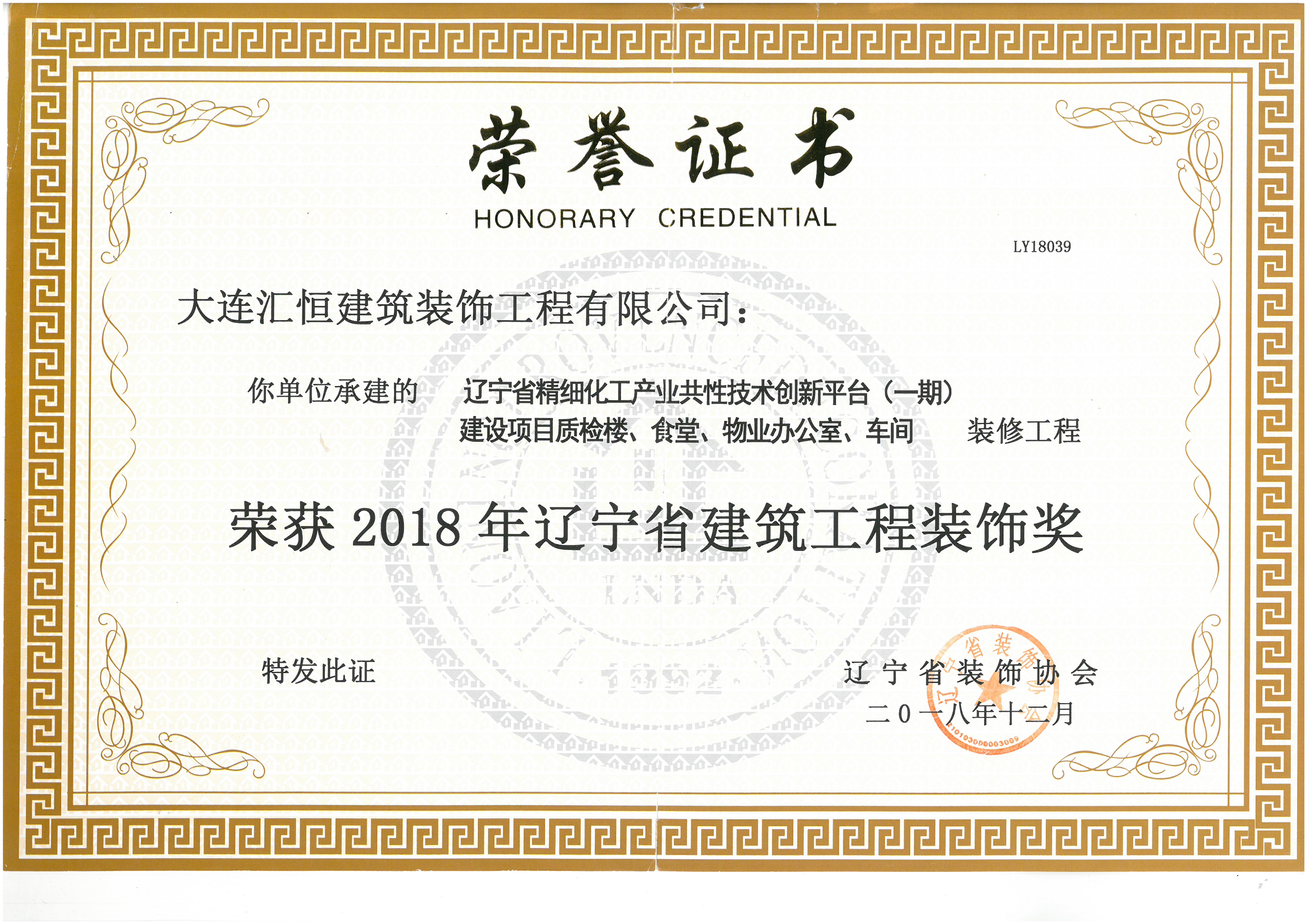 2018年遼寧省建筑工程裝飾獎(jiǎng)