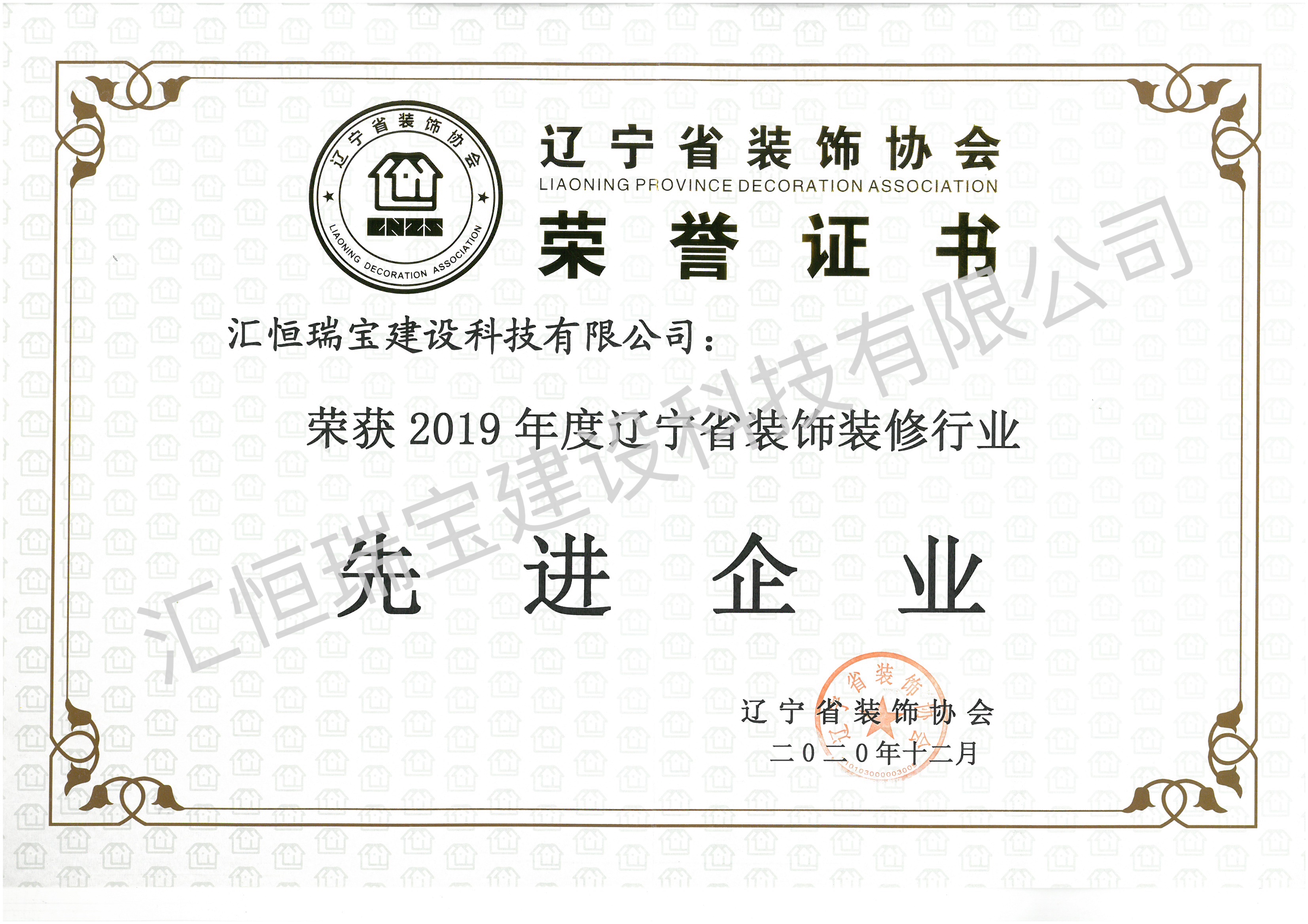 2019年遼寧省裝飾裝修行業(yè)先進(jìn)企業(yè)
