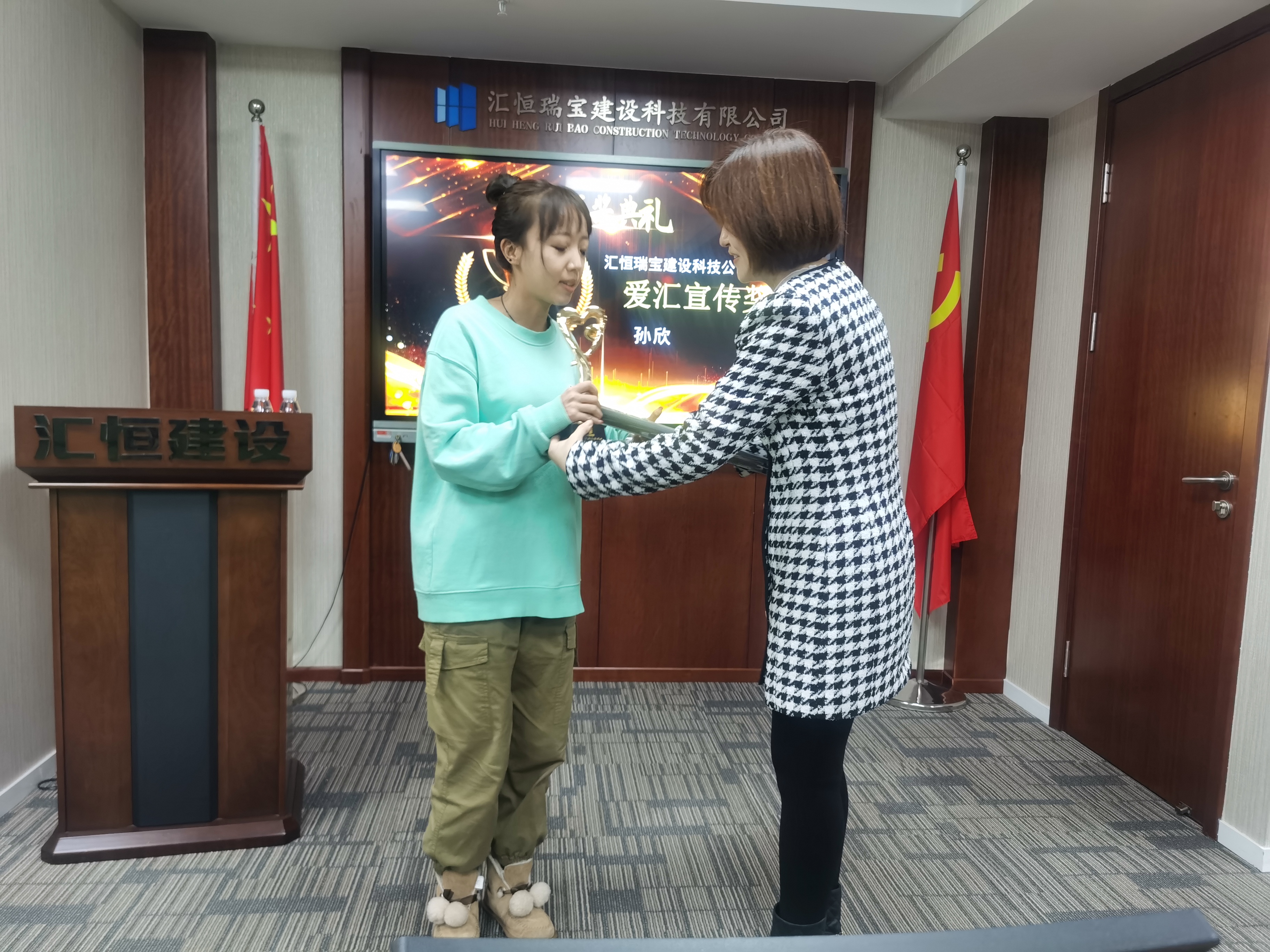 匯恒瑞寶建設(shè)科技有限公司傅總、黃總為獲獎?wù)哳C發(fā)獎杯及獎品
